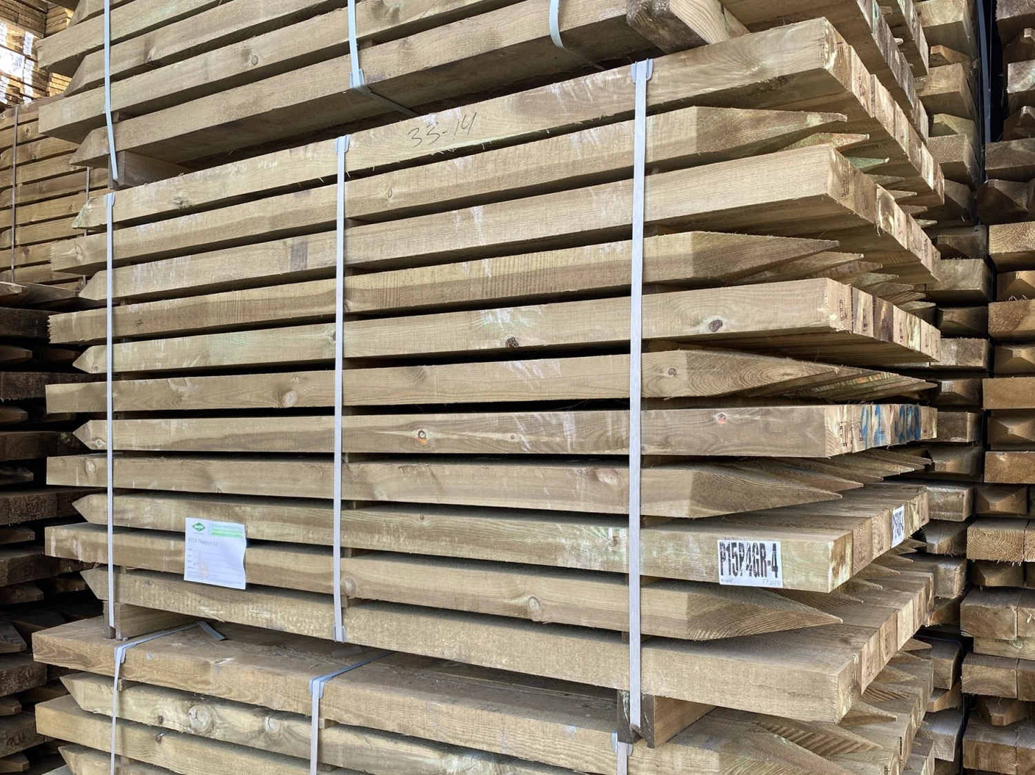 Rough Sawn Pressure Treated Fence Post. Uc4 15 Year Preformance Warranty Against Premature Failure From Decay And Insect Attack. 4 Way Pointed.