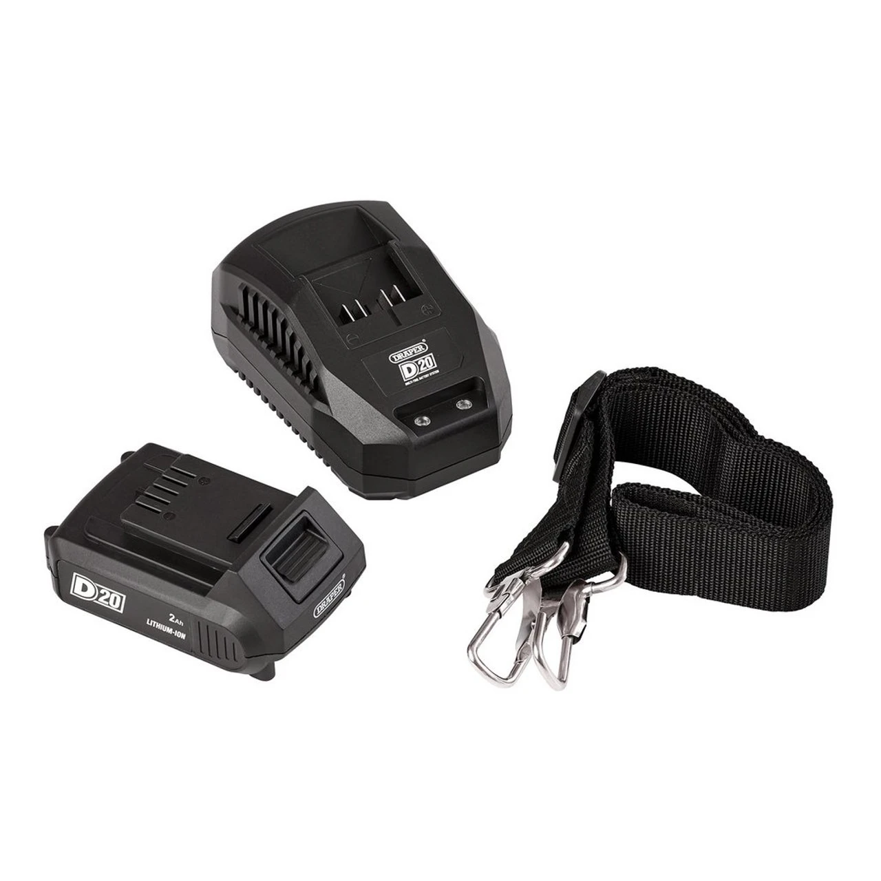 - Flow rates are up to 100g/min on low speed and 170g/min on high speed, and the set includes a 2.0Ah battery and 20V lithium-ion charger