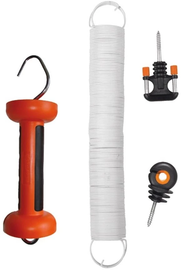 A complete gate set with spring, gate handle and gate handle anchor. Suited for 5m wide gateways.