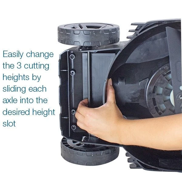 Cordless Lawn Mower For Small / Medium LawnsThe HYM40LI330P is a rechargeable low-maintenance lithium-ion battery-powered lawn mower from Hyundai. The ideal battery-powered lawn mower for small to medium-sized lawns, this mower will bring you a clean, green, cable-free mowing experience.Battery Lawn MowerThe HYM40LI330P mower features a powerful 40v motor and comes complete with a 40v battery and charger. The battery also has a handy indicator light allowing you to see exactly how much battery life is remaining. With a charging time of just 80 minutes and a battery lifespan of 1000+ charges, the HYM40LI330P makes mowing your lawn as easy as possible and will provide an average mowing time of 60 minutes from one charge, depending on the operating conditions.*Run Time (No Load) – Up to 60minsRun Time (Light/Dry Conditions) – Up to 40minsRun Time (Heavy/Wet Conditions – Up to 20minsRear Roller MowerThis compact mower is fitted with a full width ribbed rear roller for creating a traditional striped British lawn that would even rival Wembley Stadium.330mm Cutting WidthWith an cutting width of 330mm / 13 , this mower is ideal for small to medium-sized lawns and gardens.For the perfect, tailored cut on your lawn, the HYM40LI330P can be easily adjusted between its 3 different cutting heights – ranging from 20mm for a super smooth lawn to a 60mm option if youre trimming rougher ground or doing a first cut – by using a single height adjusting lever, giving you complete control over your lawn care needs.The HYM40LI330P’s spacious 30L grass collector bag, featuring a high airflow and hard lid, ensures that you’ll spend less time having to empty the cuttings and thus reducing your overall mowing time.This cordless lawn mower comes with a mulching plug option, where your dropped cuttings become compost, creating a healthier-looking, lush, green lawn.Push Lawn MowerWeighing just 11.4kg, this cordless, battery-powered mower is really easy to push around your garden. This is essential for hand push models to minimise any strain or discomfort on your arms or shoulders.Using this push lawn mower couldnt be easier – simply insert the safety key, engage the lock-out button and pull back the OPC (Operator Presence Control) lever. This easy-starting method removes any of the strain associated with petrol recoil pull-start lawn mowers.Compact and Quiet Lawn MowerThanks to its incredibly quiet-running motor, the HYM40LI330P is an ultra-quiet lawn mower to minimise any disturbances to your neighbours or family.This lawn mower is so compact to store and transport. Thanks to its clever design, its handles fold down over the main power unit, which saves space in your garden shed or garage. Its quick and easy to assemble out of the box, allowing you to get it in your garden for the first cut in no time at all. With no engine to service, you also dont need to spend time checking oil, air filters or spark plugs, making it extremely easy to maintain.What Are the Benefits of a Cordless Mower?No cables, no petrol and no pollution – the eco-friendly HYM40LI330P lawnmower is powered by a market-leading 40v lithium-ion 2.5Ah battery, which means no more messy fuel to have to deal with and no dangerous mains cables – mowing the lawn has never been easier or safer.3 Year WarrantyAs with all of our Hyundai Lawn Mower range, the HYM40LI330P comes with our Hyundai 3 year platinum home-use warranty* / 1 year commercial warranty* (terms apply) for added peace of mind.At A Glance:330mm/13? cutting width for small to medium gardensLightweight mower – easy to push around the gardenCharges from a flat battery in just 80 minsProvides on average 30 minutes of cutting time (depending on conditions)Rear roller for a striped lawn 3 adjustable cutting heights ? 20-60mm30L grass collectorFoldable handles for compact storageReally quiet running3 year home-use warranty* / 1 year commercial warranty**Cutting time depends on many factors, such as how level the ground is, the thickness of the grass, the exact model of our 40v machinery, cutting conditions and weather. Please use our run time estimates for guidance only as these can vary.Key FeaturesNo cables, no petrol, no pollution: Simply charge the battery and you’re ready to go330mm / 13 cutting width: Ideal for small to medium-sized lawns3 adjustable cutting heights: Get the perfect finish on your lawn30L grass collector bag with mulching option: Minimises time spent emptying cuttingsWeighs just 11.4kg: Easy to push around the gardenCharges in just 80 mins: Provides around 20-60 mins of mowing time from one charge depending on loadEasy to use: Simply turn the key, press a button, pull back the OPC lever and you’re off!Space-saving foldable handles: Compact to transport and storeExtremely quiet-running: Minimise any disturbance to neighboursMinimal set-up required: Get going out of the boxPeace of mind: 3 year Hyundai home-use warranty* / 1 year commercial warranty*