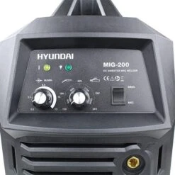 The HYMIG-200 is a lightweight and incredibly versatile single phase MIG/MMA welder from Hyundai. The HYMIG-200 is capable of welding mild steel up to 6mm. Weighing only kg, the HYMIG-200 is easy to carry around thanks to its adjustable harness and lightweight pressed steel case with powder coated finish for extra corrosion resistance. Accessories include electrode holder with 2m cable, earth clamp with 1.5m cable, chipping hammer, face mask and wire brush making the HYMIG-200 extremely cost effective. The HYMIG-200 MIG welder features a stepless regulator for infinite variable control of the welding current with a low current facility for effective welding of thinner materials. The welding (output) current of the HYMIG-200 can be regulated within the range of 10-190 Ampere making the HYMIG-200 adjustable to suit welding different materials and thicknesses of steel. Beware of lower quality models by always checking the ?Duty Cycle. Duty cycle is the amount of time, within a 10 minute period the welder can be used, on a given output. For example, our 190A welder has a duty cycle of 35% when used on 190A output (MIG), and 35% when used on 140A output (MMA/ARC). This means it can be used for three and a half minutes consistently, but then, it must be ?rested for the remaining six and half minutes. Cheaper, lower quality welders claim to be a certain Amperage output, but can have a very low duty cycle on the output they have claimed. Always check the duty cycle to ensure you are getting the best value for money. The inverter technology used within the Hyundai welders has certain advantages compared to more traditional transformer welders. The inverter type welders are usually lighter, more cost effective and usually require less input power for a comparable output. This makes them more cost effective not only to purchase, but also to run. Fitted with thermal overload protection to ensure maximum durability. Suitable for welding steel, stainless steel, copper, nickel, titanium and their alloys. Suitable for fabricators, farmers, home mechanics, mobile technicians and DIY enthusiasts the HYMIG-200 is a good all rounder for welding with applicable wire size of 0.8mm Flux or 1.0mm Solid Core. The HYMIG-200 features high frequency starts allowing for smooth arc strikes. With low service and maintenance requirements, the HYMIG-200 is incredibly easy to use and maintain, and has full Hyundai UK parts back up. In the box: MIG torch with 3m cable, Electrode holder with 2m cable, Earth clamp with 1.5m cable, Chipping hammer, Face mask/shield & Wire brush. Know your welder: (MMA) Manual Metal Arc – Manual Metal Arc Welding (MMA) or (MMAW) Manual Metal Arc Welding is flux shielded arc welding or informally known as stick welding, is a manual arc welding process that uses a consumable electrode covered with a flux to lay the weld. (TIG) Tungsten Inert Gas – Tungsten Inert Gas Welding (TIG) or (GTAW) Gas Tungsten Arc Welding is an arc welding process that uses a non-consumable tungsten electrode to produce the weld. (MIG) Metal Inert Gas – Metal Inert Gas Welding (MIG), (GMAW) Gas Metal Arc Welding or (MAG) Metal Active Gas is a welding process in which an electric arc forms between a consumable wire electrode and the workpiece metal(s), which heats the workpiece metal(s), causing them to melt and join. Covered by Hyundai UK 2 year warranty.  Variable DC output of 10Amp to 190Amp Electrode size 1mm to 3.2mm Duty cycle of 35%@190A (MIG), 35%@140A (MMA/ARC). MIG welder with MMA/ARC function Latest IGBT Technology (Insulate Gate Bipolar Transistor) Fitted with thermal overload protection, Anti-stick and hot start functions Includes welding rod holder, earth clamp and cables Suitable for mechanics, mobile technicians, farmers and DIY enthusiasts Covered by Hyundai UK 2 year warranty. Full UK service and parts operation to maintain your welder for years to come. Key Features Variable DC output of 10Amp to 190AmpElectrode size 1mm to 3.2mmDuty cycle of 35%@190A (MIG), 35%@140A (MMA/ARC).MIG welder with MMA/ARC functionLatest IGBT Technology (Insulate Gate Bipolar Transistor)Fitted with thermal overload protection, Anti-stick and hot start functionsIncludes welding rod holder, earth clamp and cablesSuitable for mechanics, mobile technicians, farmers and DIY enthusiastsCovered by Hyundai UK 2 year warranty.Full UK service and parts operation to maintain your welder for years to come.