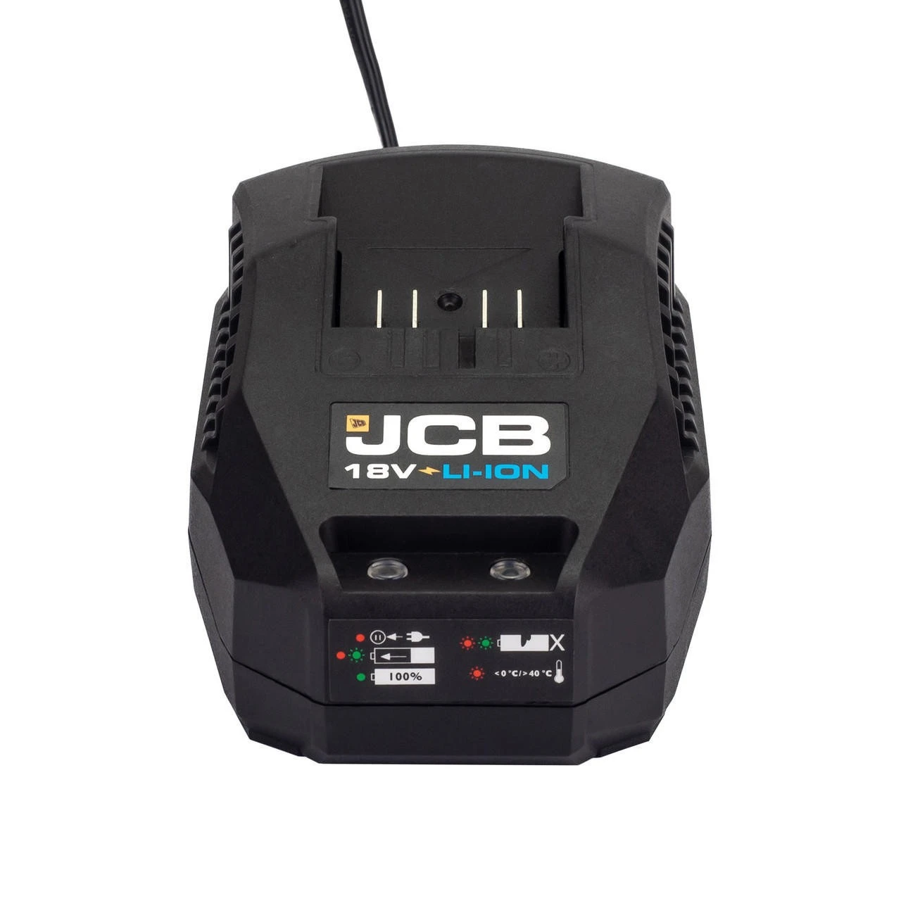 JCB 18V Brushless Impact Driver with 5.0Ah Lithium-ion battery and 2.4A charger 18V Impact Driver with Brushless Motor Technology with 5.0Ah Lithium-ion battery and 2.4A fast charger 25% more power ? Brushless motors have fewer moving parts results in a quiet motor that never needs maintenance. The reduced friction enables a better use of available energy from the battery pack as there is no resistance from brushes 50% more run time ? Brushless motor technology means the carbon brush resistance is eliminated, so less battery energy is wasted. The efficiency of a brushless motor results in a greater run time from each charge 2-Speed variable gearbox for efficient drilling of various materials. Powerful 180Nm Torque with variable speed up to 2,000rpm 1/4 Hex quick change chuck Built in LED for improved visibility Ergonomic design with rubber grip overmould for increased user comfort Belt clip that can be positioned on either side of the 18V Brushless Impact Driver JCB 13 piece impact bit set contained in folding holder for convenient storage. Universal fit – compatible with most branded impact drivers Includes Phillips and Pozi impact bits Colour coded for easy bit selection 18V 5.0Ah Lithium-ion battery compatible with JCB 18V cordless and brushless power tools. Charge time in 120 minutes with JCB 18V 2.4A Fast Charger LED charge indicator Part of the JCB 18V Lithium-ion one battery platform range Up to 120 minute run time 18V 2.4A Fast Charger compatible with JCB 18V Lithium-ion batteries. Key Features Perfect to use to quickly drive screws & drive in a large quantity of fasteners, longer screws and lag bolts It can be used for harder materials including hard woods, concrete and masonry This is a heavy-duty screwdriver made for working with denser, heavier materials and for longer periods of time Powerful even in hard-to-reach areas thanks to the best head length to torque ratio Longer runtime and service life thanks to the brushless motor Battery & Charger included. Simply charge and you are ready to go IBacked up by UK support and our JCB 3 Year Warranty